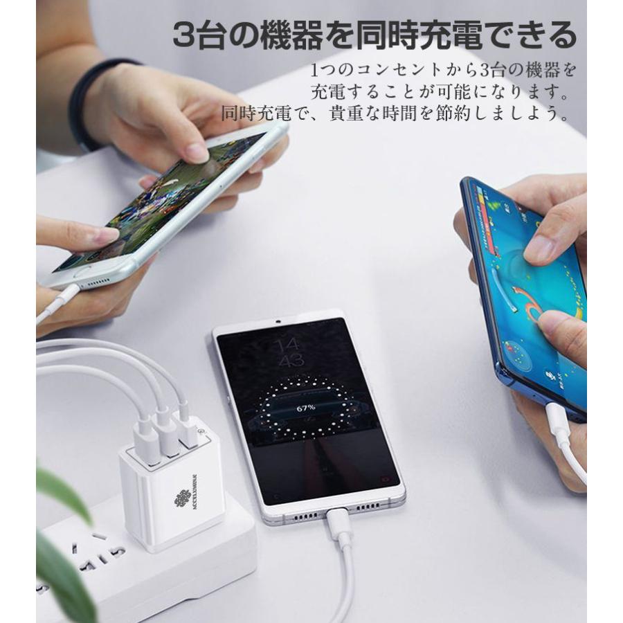充電器 アダプター 急速充電 Quick Charge 3 0 Usb Pse 適合品 全機種対応 3台同時充電 3ポート Acアダプター Qualcomm Qc3 0 Iphone Android Accelumina 通販 Yahoo ショッピング
